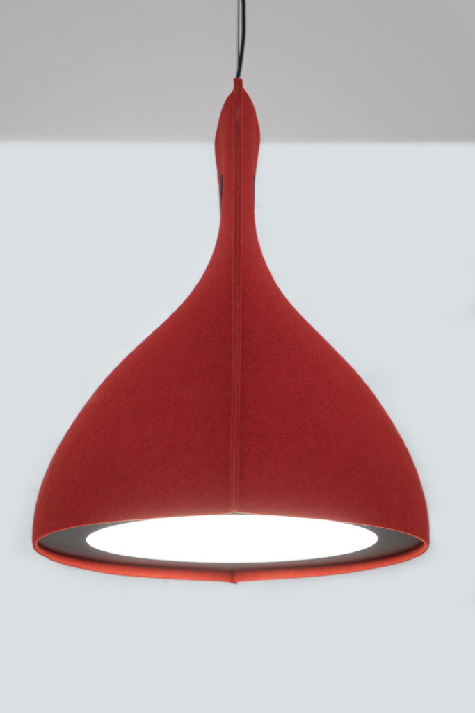 Stretching the BuzziFelt to its limits, BuzziBell is recognized by the harmonious curve of its bell-shape. Its design adds softness to a room with the textural look of felt and a delicate, diffused light source or high performance LED engine. BuzziBell is offered in the 12 BuzziFelt colors, has a metal feature and will be CE and UL listed. BuzziBell makes a statement in offices, restaurants, hotels, institutions and residences.