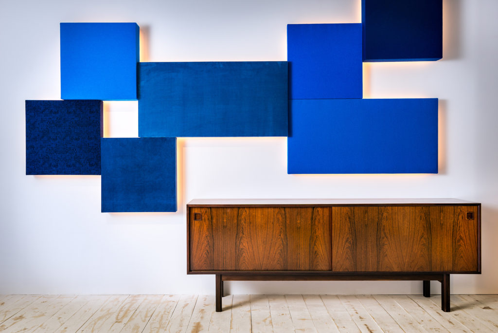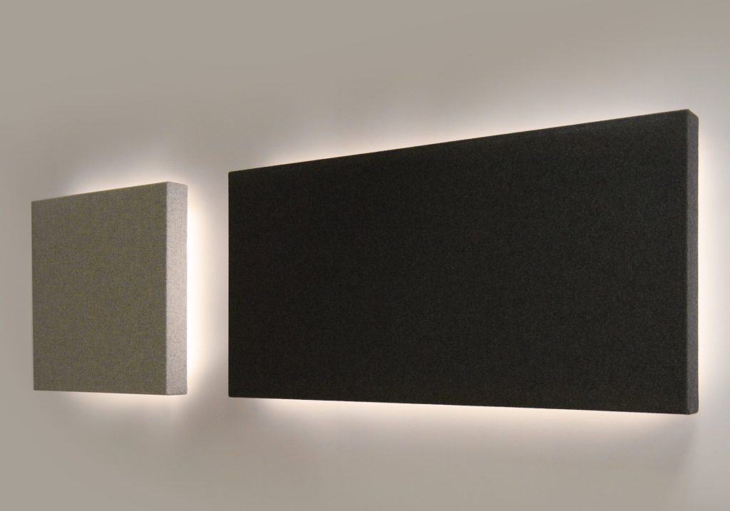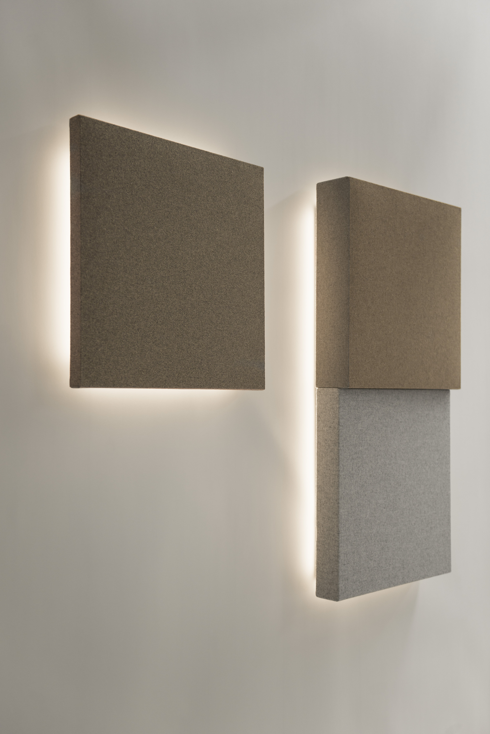 BuzziClipse offers the best of both worlds: subtle back lighting experience and highly acoustical performance. The frontpanel of BuzziClipse, designed to tackle acoustical issues in a room, is based on a highly finished aluminum frame housing the LED strip with an output of 870 lumen. The LED frame is offered in 2 variants: square and rectangular. Playing with different LED frames combined with front panels, upholstered in different fabrics, results in a nice wall feature and a high-performance sound dampener. This product is a true acoustical “eclipse”.