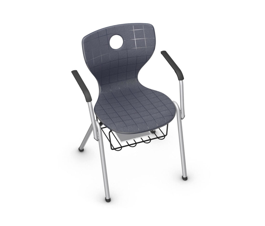 Equipment and options. Glide elements for hard and soft floors or 2C universal glide. With book/storage basket under the seat pan.