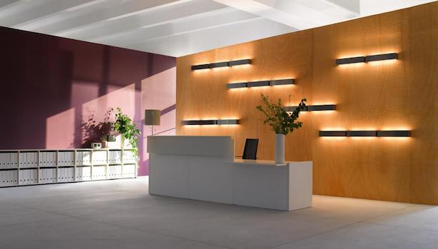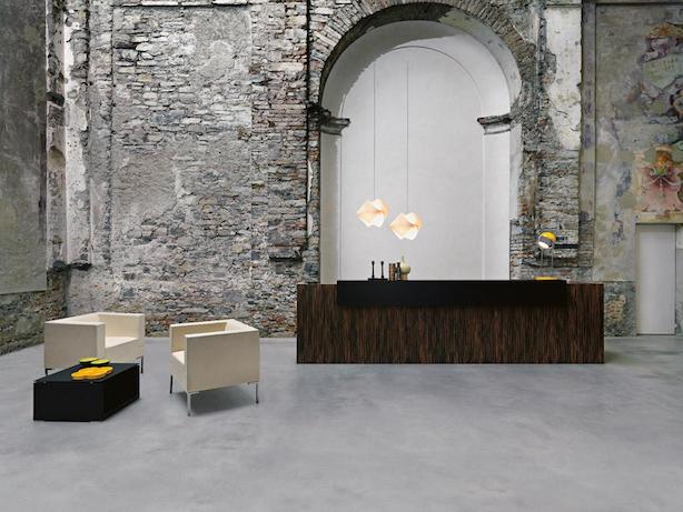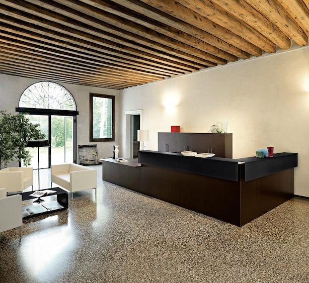 The reception is the first ambient expressing the personality and the image of a company: with its strict minimalism, Factory communicates an atmosphere of fine functionality. Clean lines, large surfaces and volumes of different heights, greet visitors and meet all the needs of the operators. Prestigious in real Wenge, Ebony and Walnut, pleasantly essential in white, warm and sunny in walnut, light and dark oak, Factory can be customized with unique hanging lamps or integrated into the desk.