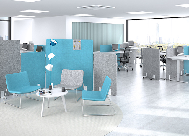 Divide up your office any way you want, all the time, everywhere with the acoustic screen system FREE STANDING. This is a mobile room divider which blocks unwanted looks and sounds.