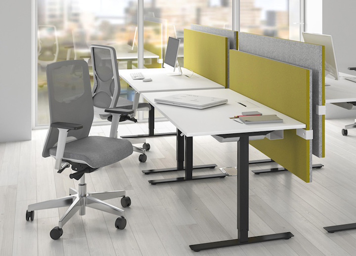 MODUS – adjustable in height screens with acoustic characteristics. The construction of MODUS allows the option of two fabric colours, so you can easily create an individual work environment, which will also match the image and interior design of your company.