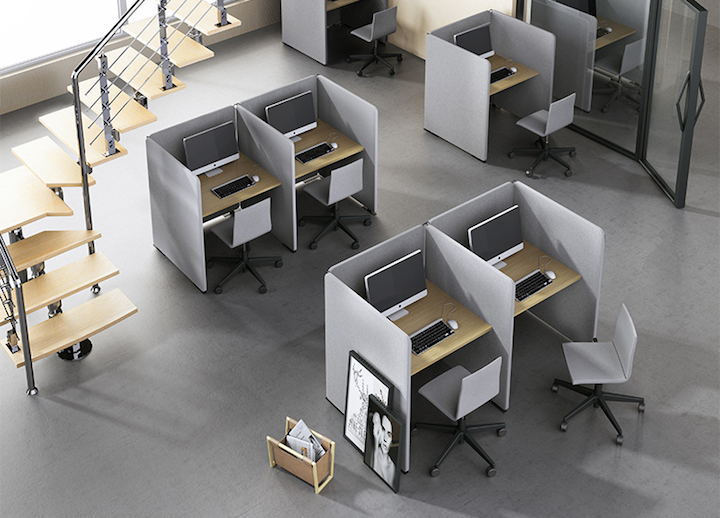 The universal acoustic furniture system MY SPACE gives you the freedom for creativity and at the same time serves two functions: absorbs the sound and divides spaces. Various combinations are available not only for the individual spaces but also when grouping workplaces.