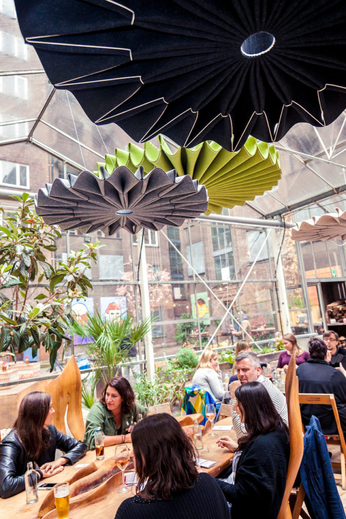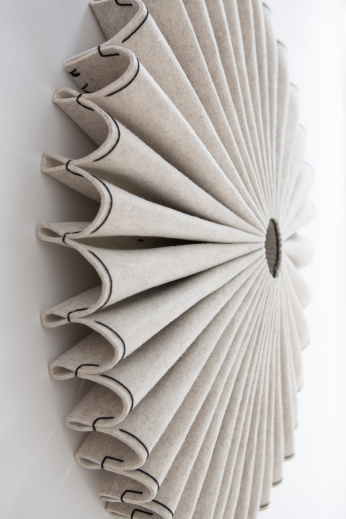 BuzziPleat, a series of architectural solutions by 13&9, delivers sound control with an architectural edge. BuzziPleat reinterprets ancient techniques used in fashion design, like smocking and pleating, to create large-scale, yet lightweight sculptural forms, made of sound-absorbing BuzziFelt.